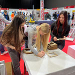 Wir verkaufen Schokopralinen sowie Blue Chips aus fairem Handel.